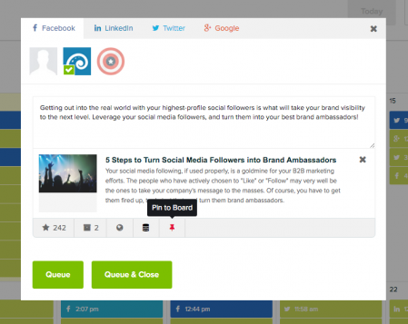 With Oktopost, marketers can create social posts inside the platform and “pin” only the ones they’d like to appear on the Social Advocacy Board. This enables them to repurpose content they’ve created and gives them control over which posts will be featured.