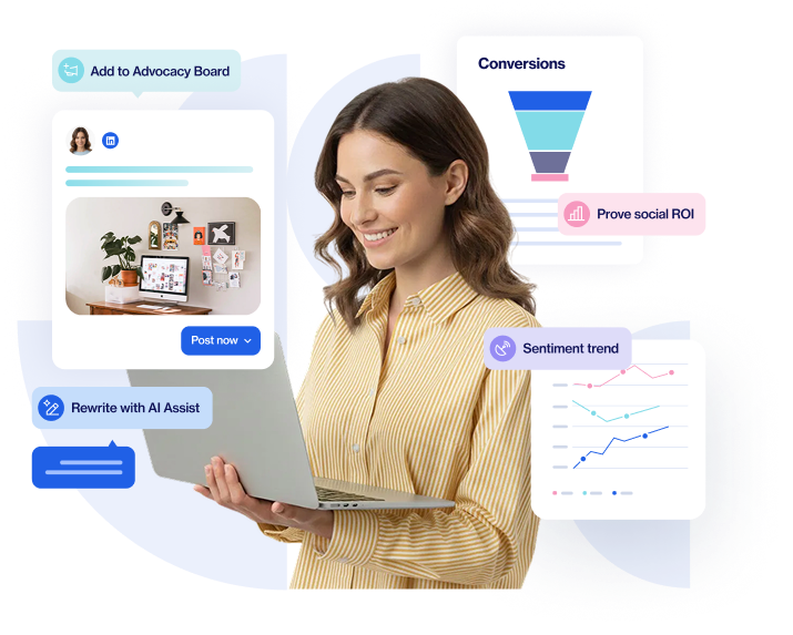Transform your employees into active brand advocates with a centralized platform that syncs between brand and advocacy campaigns, delivers shareable content, and monitors their impact at scale. Build a truly social organization.