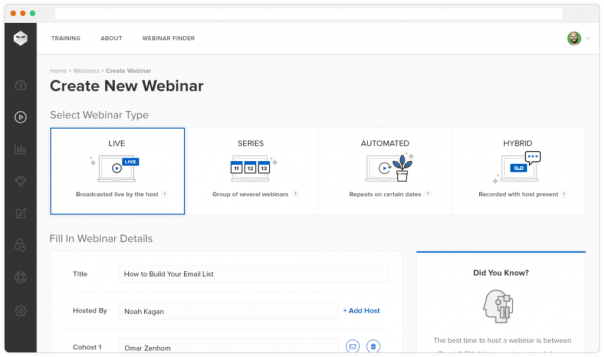WebinarNinja is one of the fastest solutions to implement, and they promise that you can have your platform up and running in under a minute. WebinarNinja’s integration with Zapier gives it an edge as it allows for integration with many popular CRMs.