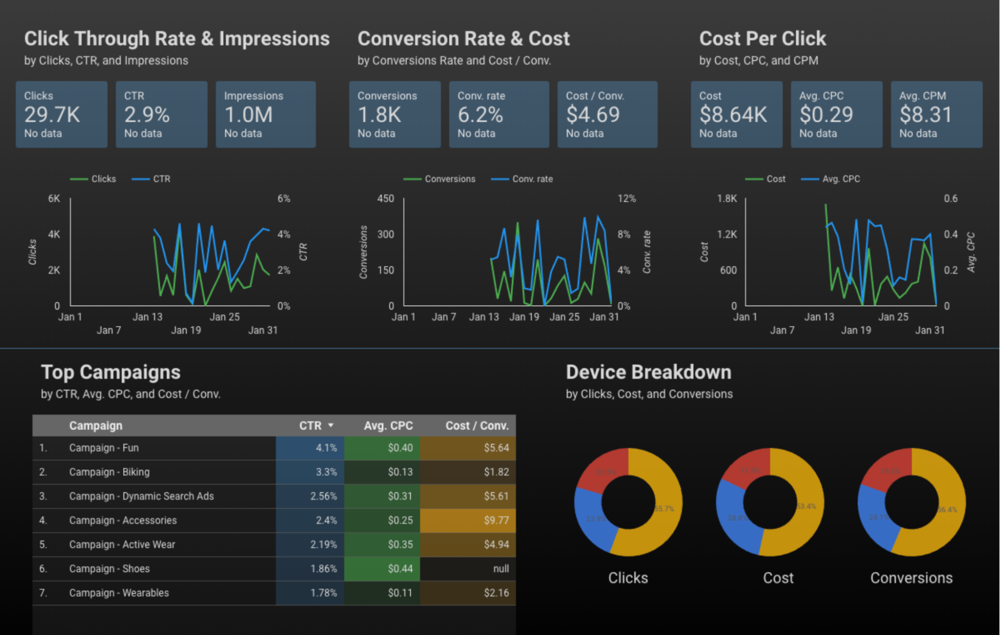 - Google Adwords campaign dashboards