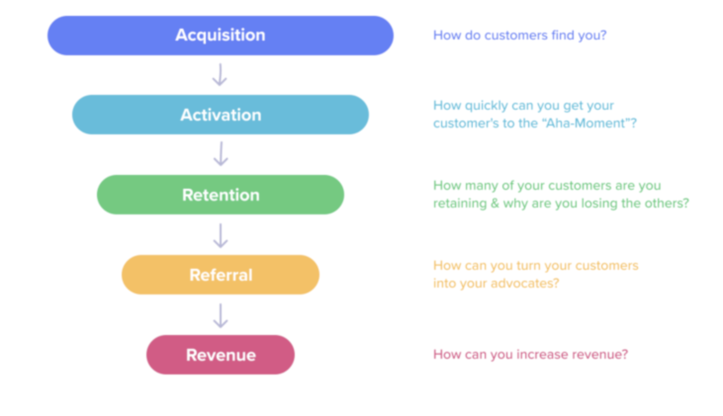 - Activation: this means activating customers to start using your product.