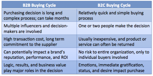 Let’s take a quick look at the main differences and factors that differentiate the B2B and B2C buying cycles from each other.