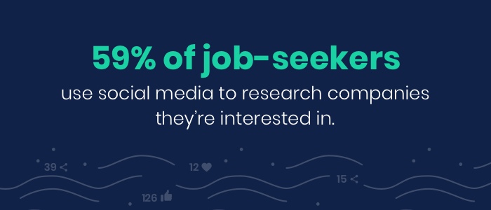 Just like you turn to social media to screen candidates, 59% of job-seekers use it to research companies they’re interested in. Whether you reach out to a prospective candidate directly or they apply for a job on LinkedIn, your personal social profile is very likely to be the first place candidates will go to.
