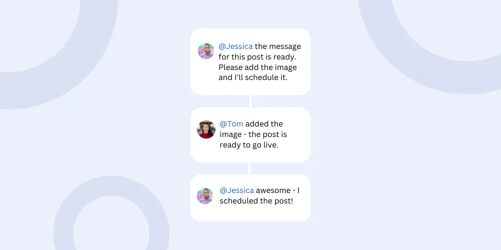 Social media managers today need a way to collaborate on posts before sending them for approval, especially in bigger teams where multiple colleagues collaborate to put together different content types for sharing on social media.