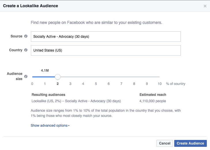 Once you’ve created this audience, you’re ready to create a Lookalike Audience based on your socially-active audience: