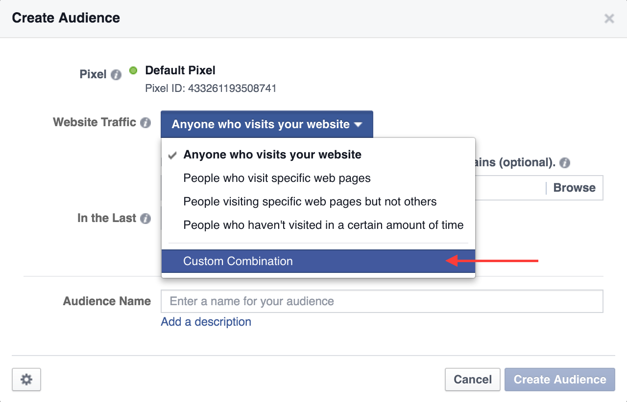 - Inside this window, make sure the Website traffic option is on “Custom combination.”