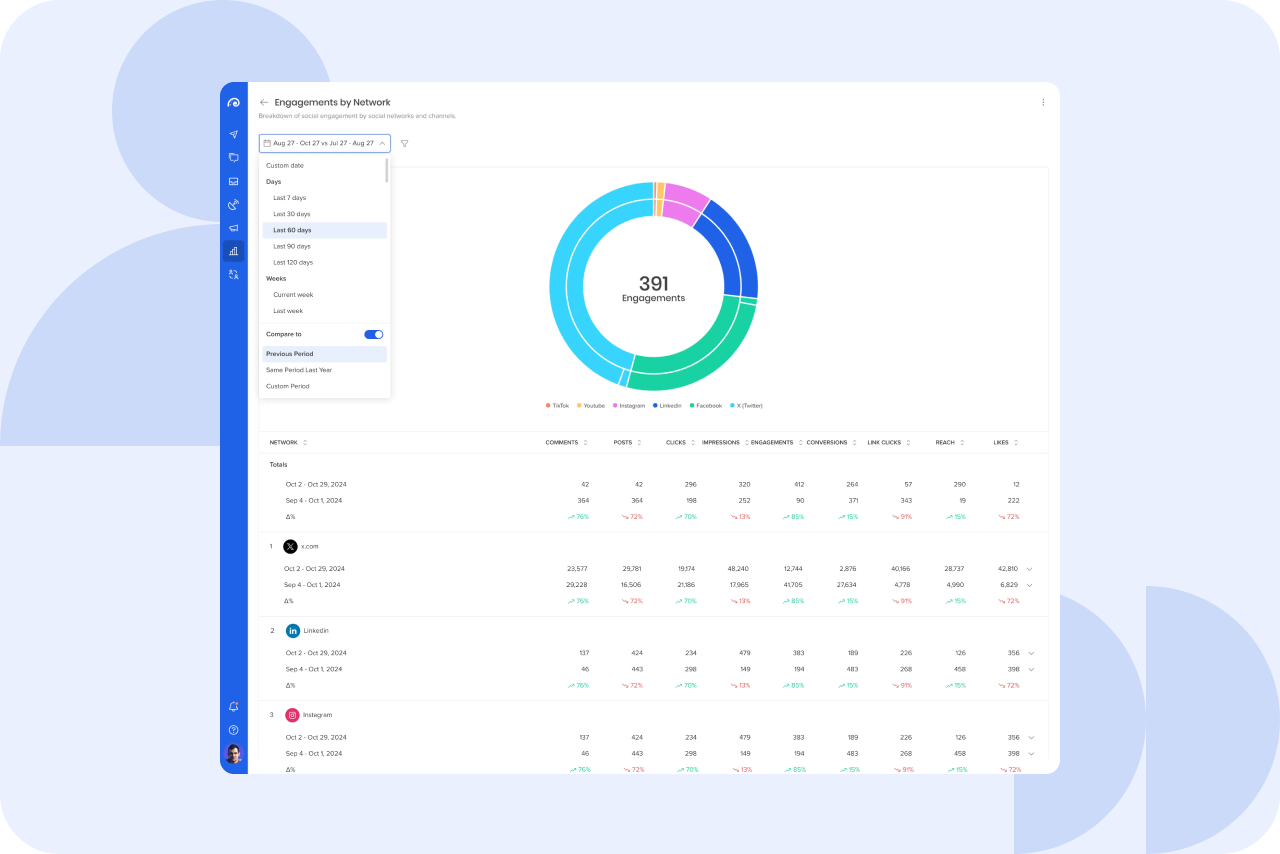 Custom comparisons and visual indicators make it easier to uncover trends, spot anomalies, and understand performance in context. As social media becomes increasingly central to any B2B marketing strategy, the ability to gain deep insights into one’s social media performance is key.