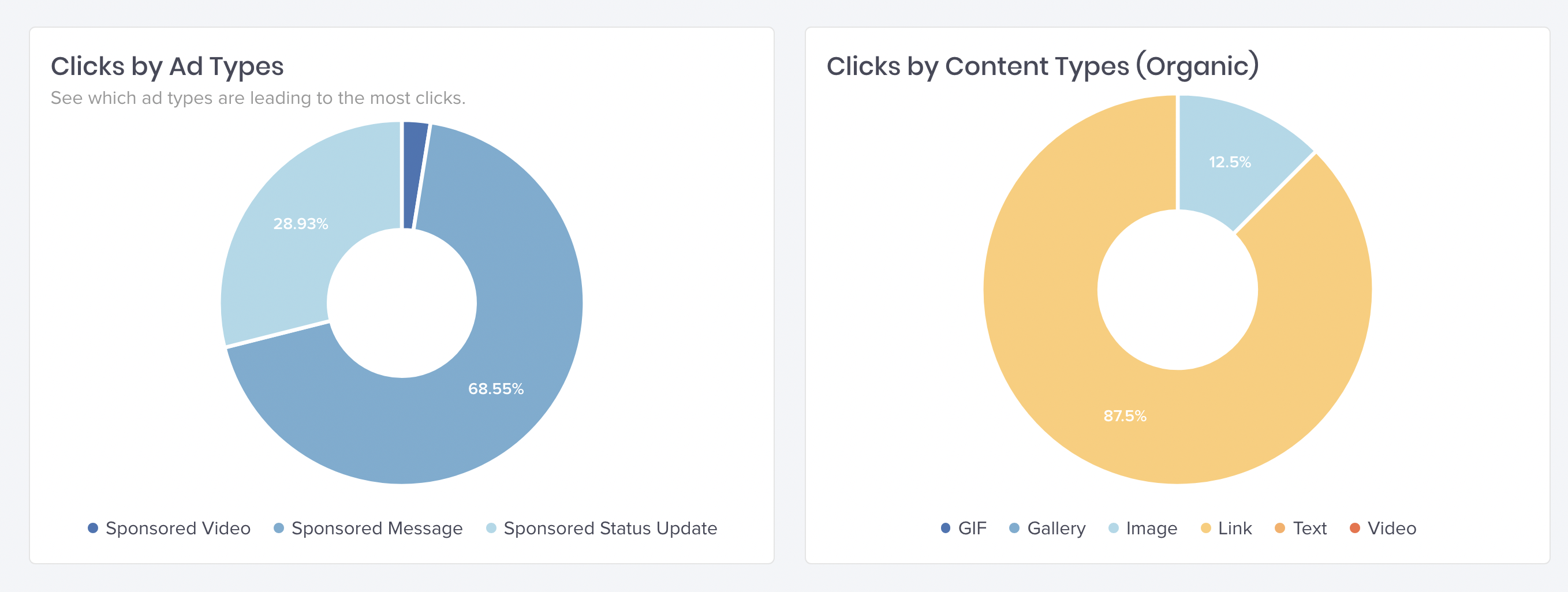 No more stitching reports from different platforms and wasting time on tedious Excel tables. Share stunning and professional PDF dashboards with your team in seconds. Schedule automatic exports. Use many different chart types and metrics to measure and compare the impact of ads in the context of your overall social media strategy.