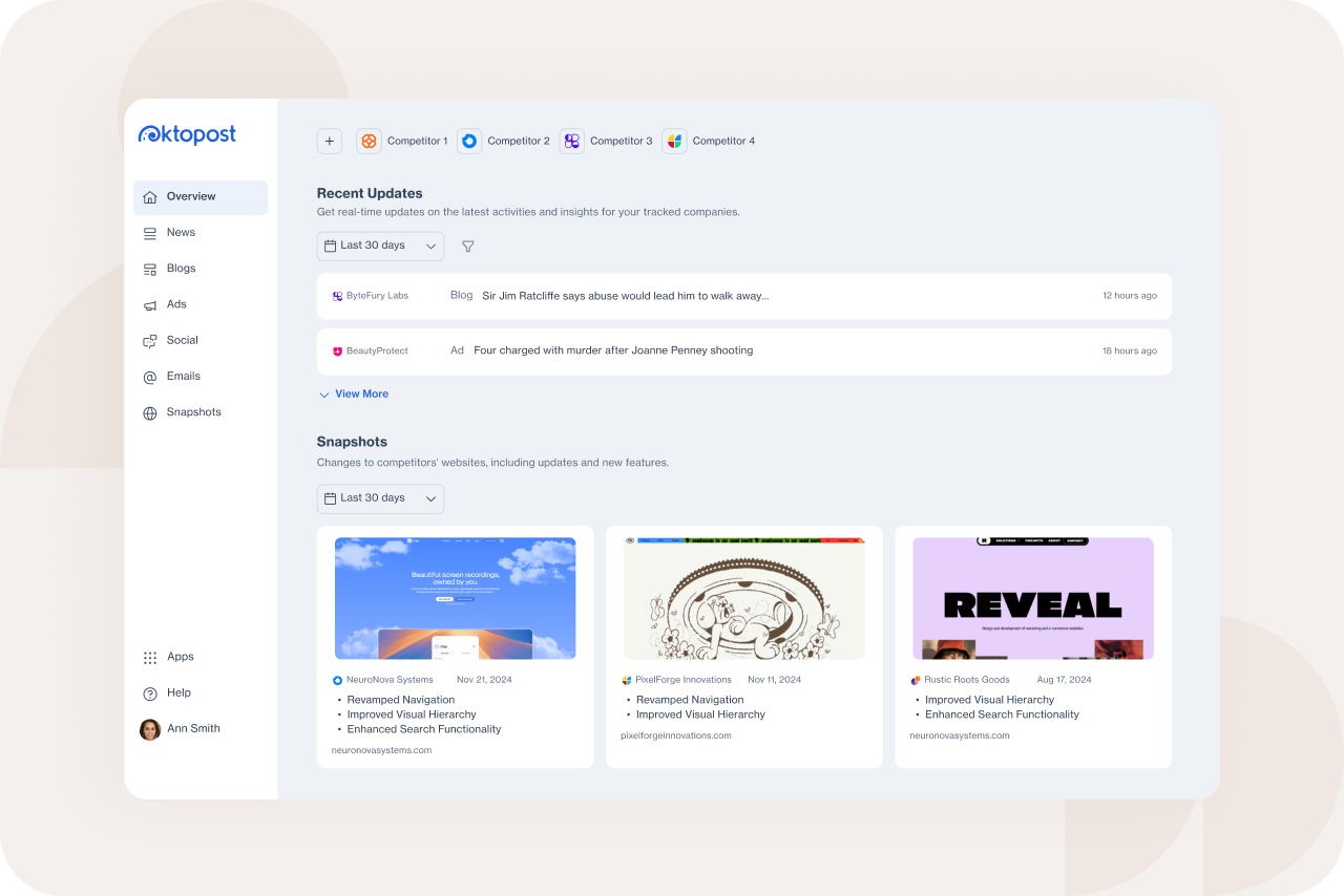 Imagine this: You’re a fly on the wall in your competitor’s marketing meeting. You hear their team planning what content they’ll publish next, which trends they’re betting on, and how they’re positioning their next big product launch.
