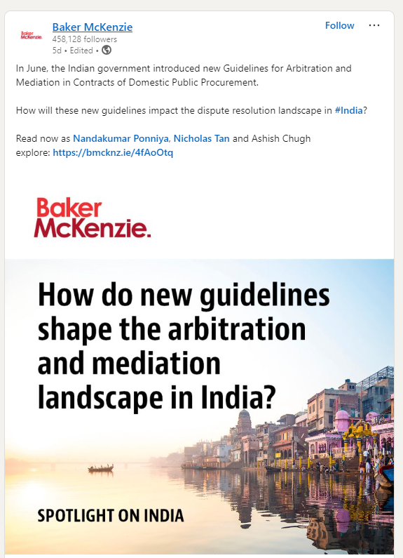 Example Post: A spotlight on India about arbitration and mediation guidelines