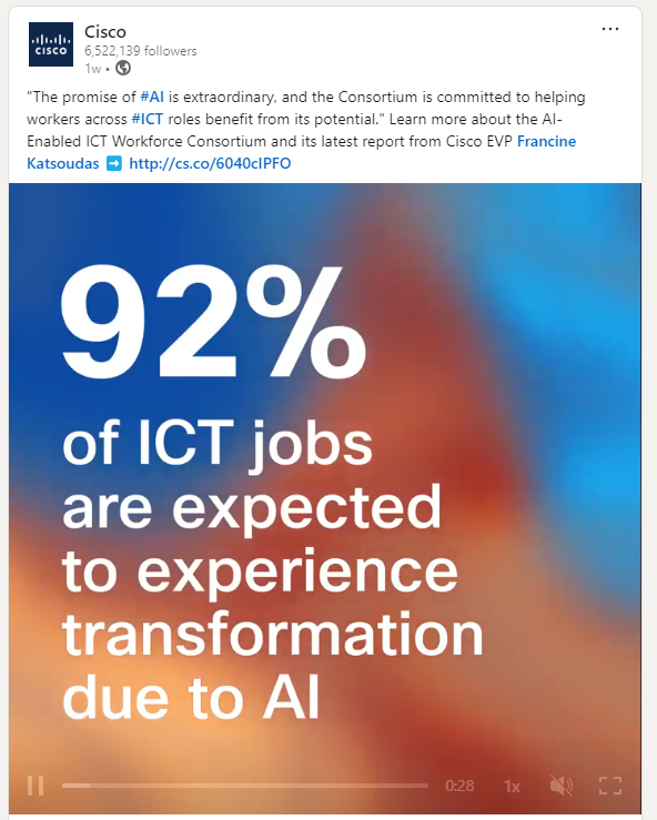Overview: Cisco, a global leader in networking and IT, manages a diverse audience that includes IT professionals, business leaders, and technology enthusiasts. Their LinkedIn strategy is focused on delivering content that addresses the needs of these varied segments.