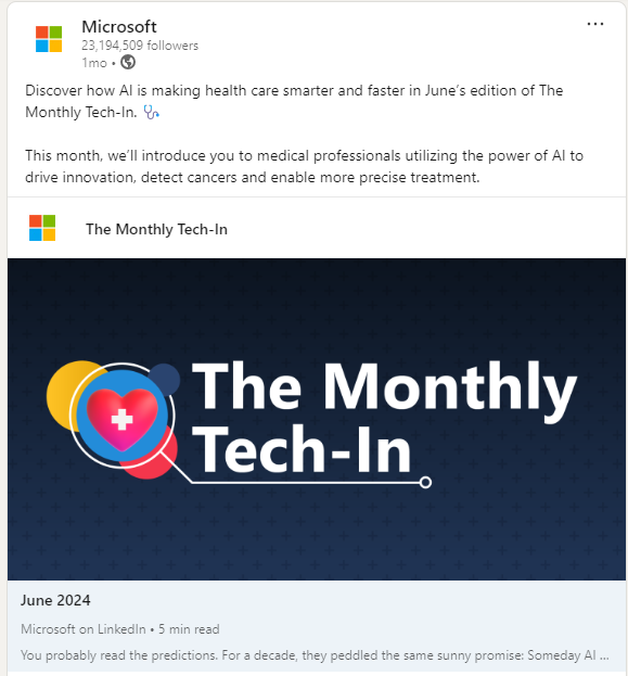 Overview: Microsoft serves various sectors, including enterprise IT, education, and gaming. Their LinkedIn page is a great example of managing a diverse audience with targeted content.