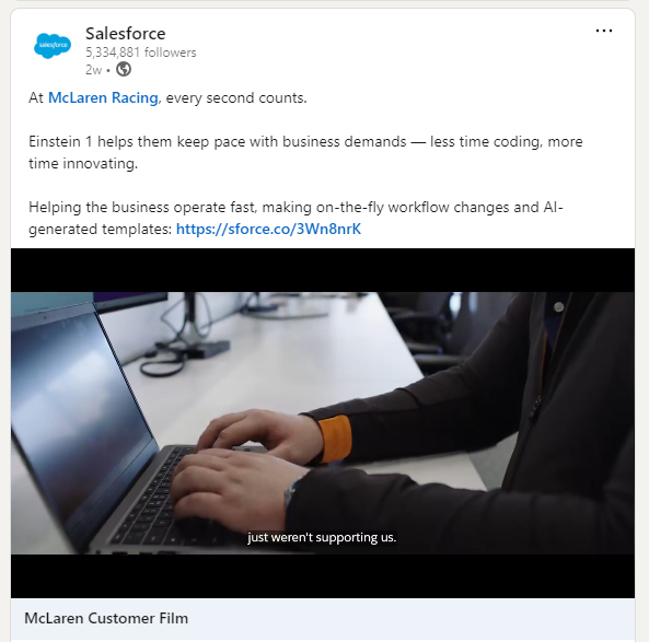 Interactive Webinars and Events: Salesforce hosts webinars and virtual events tailored to specific industries they promote on LinkedIn.