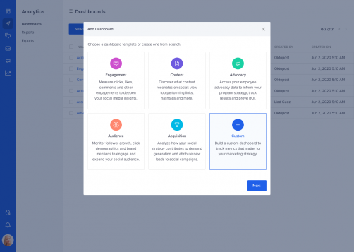 The definition of a BI platform is taking any type of business question and applying your data to find an answer. And that’s exactly what you can now do in Oktopost: easily build custom dashboards and reports to track and analyze metrics in a way that’s most meaningful to your team.