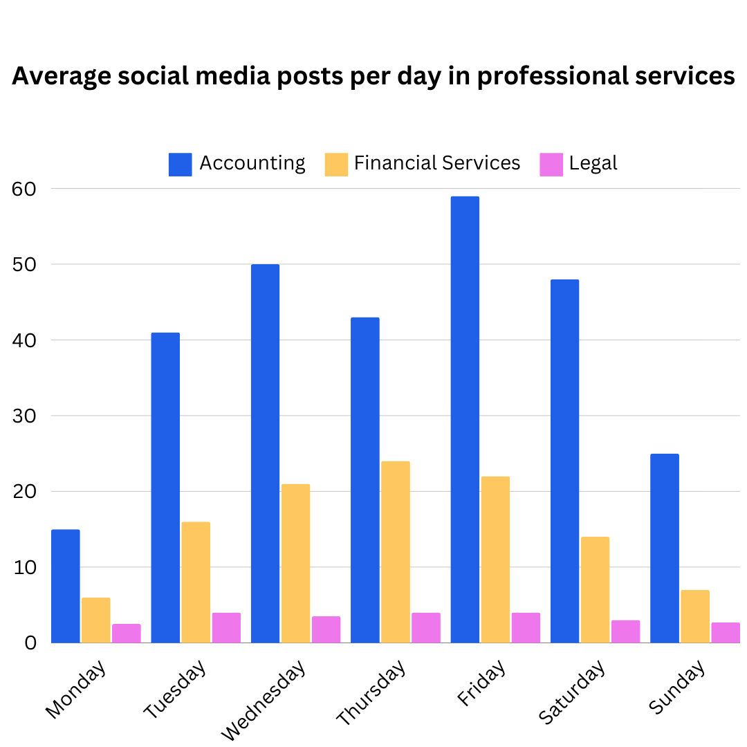 When comparing Accounting firms and Financial Services firms to Legal Services firms, on average, Accounting firms’ employees posted 1161% more than Legal services firms, and Financial Services firms posted 445% more than Legal Firms.