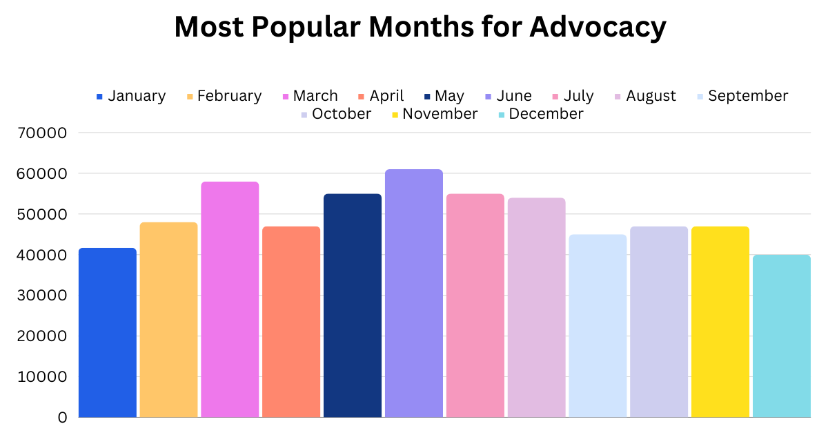 Not surprisingly, December and January saw the lowest number of advocacy posts in the year, which is likely due to the holiday season. June was the most popular month for posting advocacy content, closely followed by March.