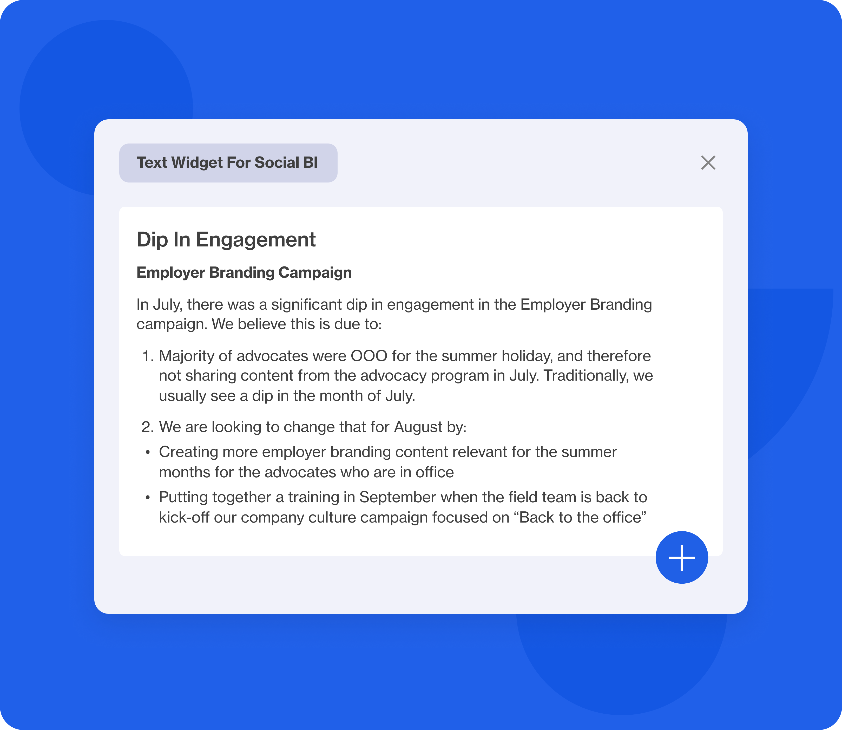 The pressure to prove the value of social media efforts is constant when you are a B2B social media marketer. However, simply gathering and presenting data isn’t enough. Reports need to be more than just a collection of numbers—they need to tell a story, provide clarity, and offer actionable insights. The Text Widget for Social BI is a game-changer, providing B2B marketers with the tools needed to build more compelling reports.