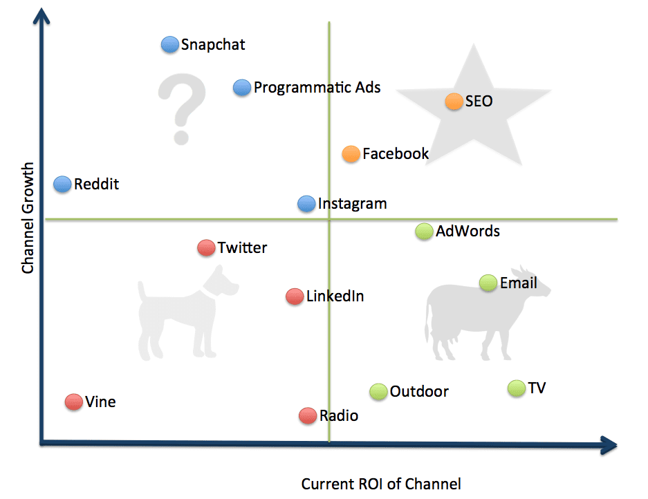 The GSM can not only be used to choose digital strategies but to categorize and evaluate those strategies currently in use. For example, strategies like email marketing or search ads that were your cash cows may have turned into Dogs while you weren’t looking. It’s impossible to know without evaluating their place in your digital strategy.