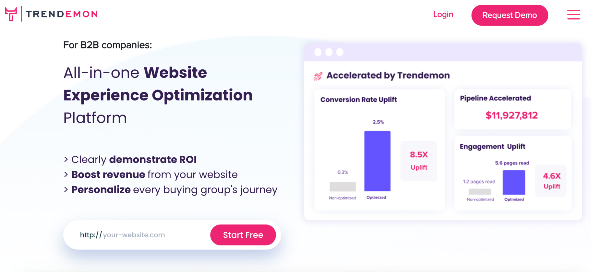 Trendemon offers advanced analytics for tracking and visualizing online customer journeys in real-time, from their first visit to conversion. It also integrates with the popular CRM platforms Hubspot, Marketo, and Pardot (now Marketing Cloud Account Engagement).