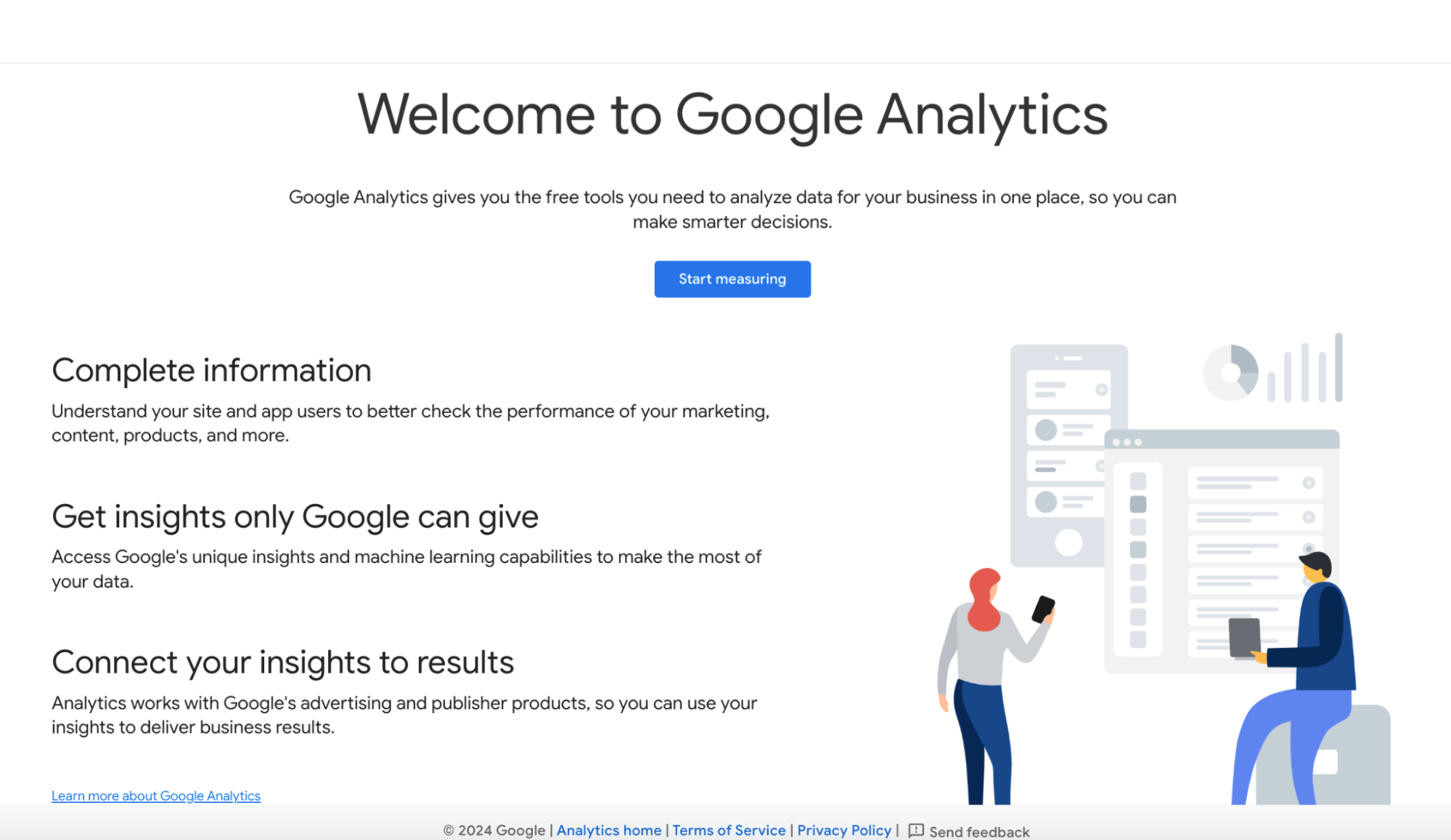 Google Analytics (updated to Google Analytics 4 in July 2023) is a Google service that tracks analytics from websites and apps. Its features include user journey visualization, cross-platform tracking, event-based data measurement, real-time website and visitor analysis, anomaly detection, and audience segmentation.