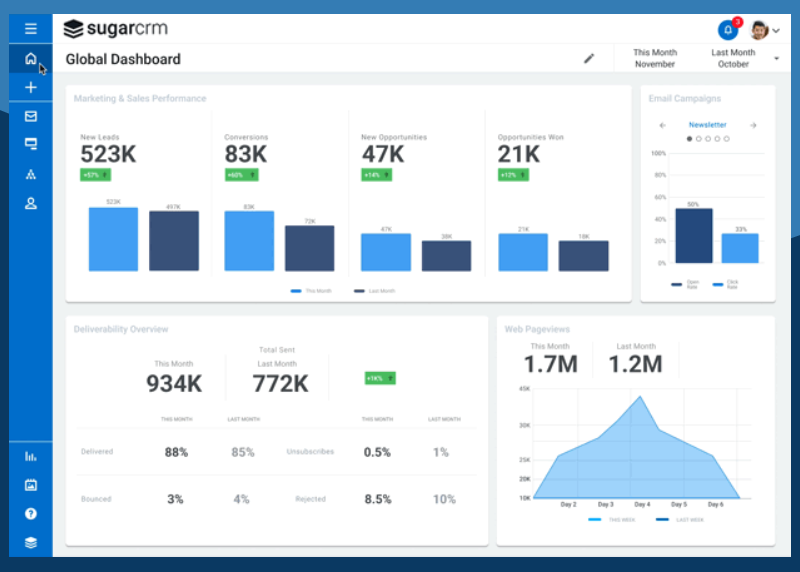 SugarCRM offers robust contact and lead management features, sales automation, and pipeline tracking. Businesses can tailor the CRM system to their needs and trigger workflow automation to manage customer interactions throughout the customer journey. The tool also offers reporting and analytics to understand customer satisfaction and inform marketing strategies.