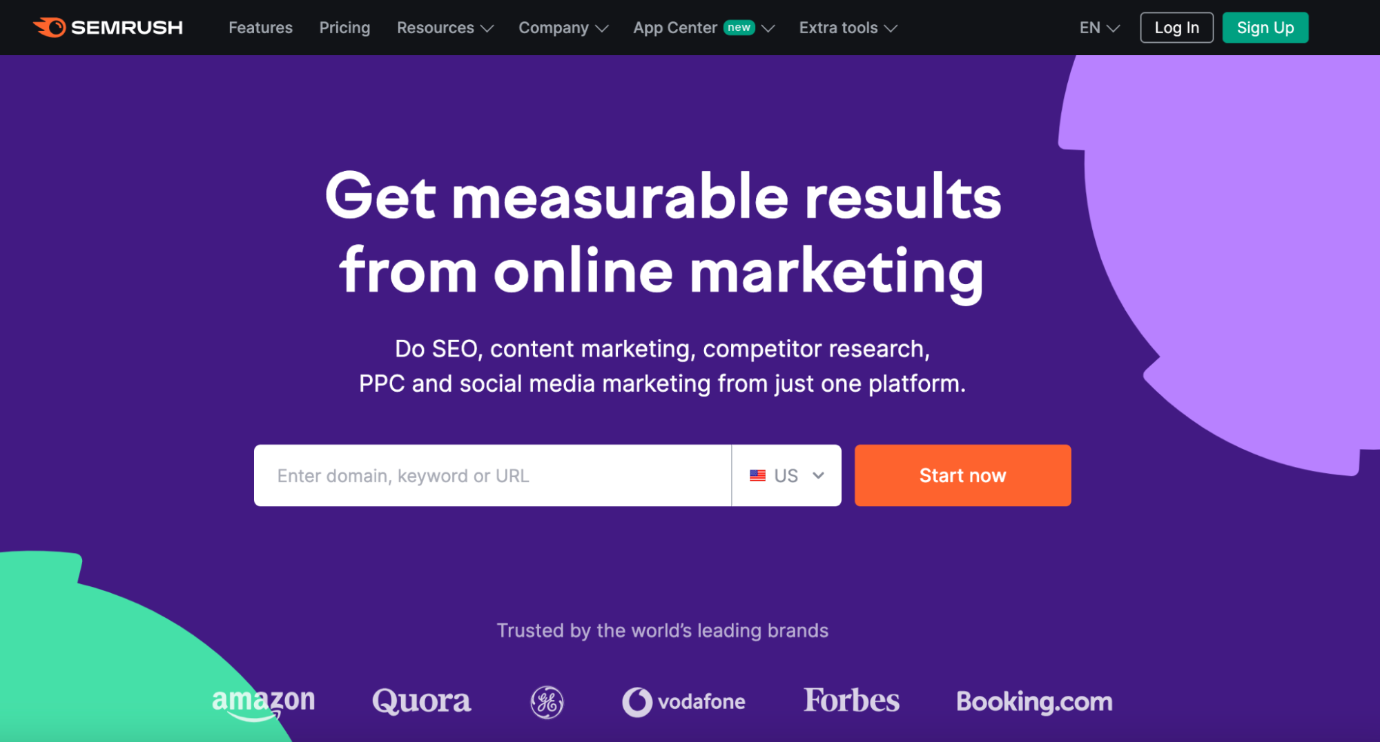 SEMrush is a widely used platform that focuses on content marketing and SEO. It offers an array of capabilities, such as keyword research, keyword tracking, SEO optimization, and backlink analysis, to enhance website health and improve search engine rankings. It also offers complementary features such as advertising analytics and competitor benchmarks, enabling teams to stay ahead of their competitors online.